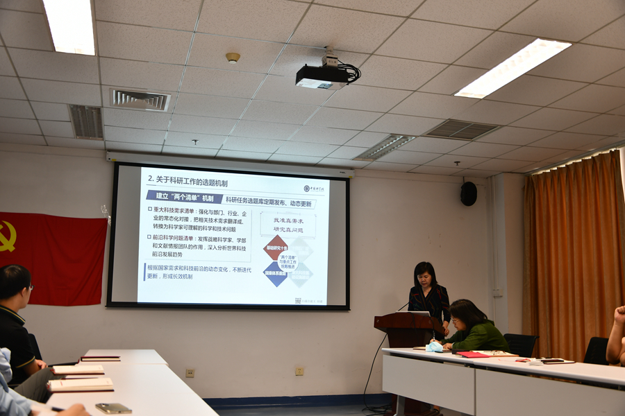 申书记传达了院夏季党组会精神,鼓励科研工作者积极推动选题机制,根据国家需求和科技前沿的动态变化,不断迭代更新,形成长效机制,并号召全体党员同志更加紧密团结在以习近平同志为核心的党中央周围,团结进取,以优异的成绩迎接党的二十大胜利召开。