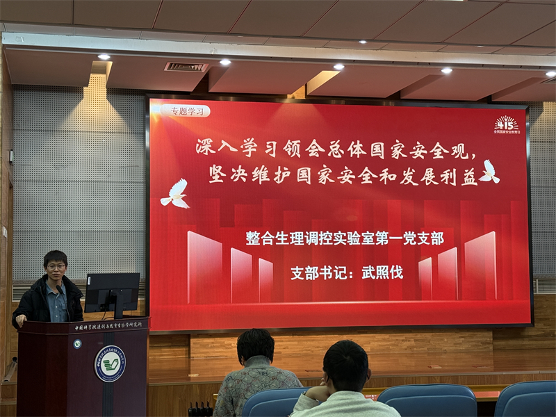 为深入学习贯彻习近平总书记关于总体国家安全观的重要论述,切实增强党员的国家安全意识和风险防范能力,12 月 16 日下午,整合生理调控实验室第一党支部在 2 号楼 210 会议室举行总体国家安全观专题党课。党支部书记武照伐主讲,组织委员王敏主持,支部共 15 名党员参加学习。