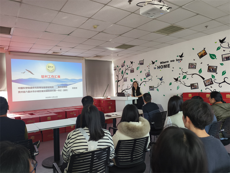 会议特邀中国科学院遗传与发育生物学研究所派驻贵州省六盘水市水城区蟠龙镇院坝村驻村第一书记郑昱君同志作专题宣讲。郑昱君同志自2024年1月驻村以来,始终奋战在乡村振兴最前线,因在基层党建、乡村治理、产业帮扶、民生改善和精神文明建设等方面的突出贡献,于2025年6月荣获贵州省“全省乡村振兴优秀驻村第一书记”称号。