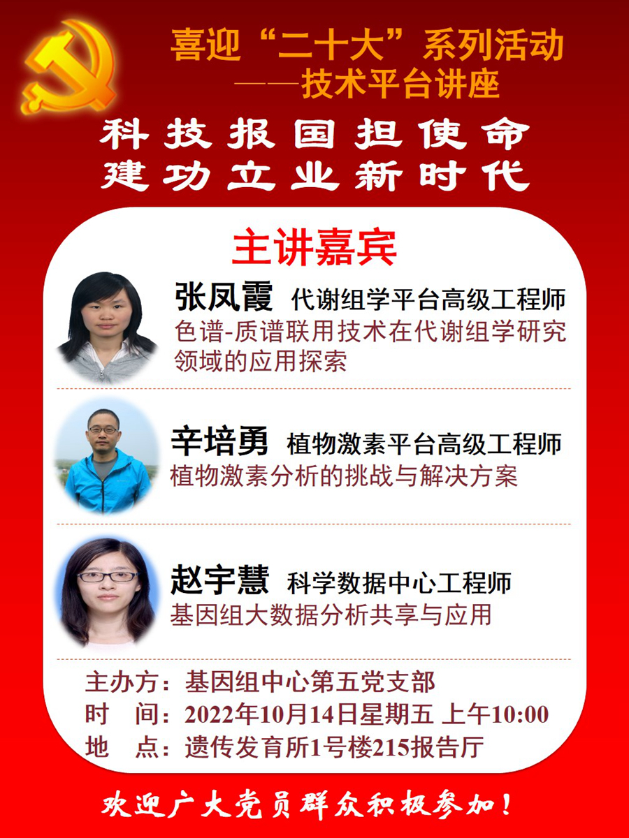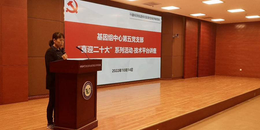 为了迎接党的二十大的顺利召开,2022年10月14日上午,中国科学院遗传与发育生物学研究所基因组生物学研究中心第五党支部举办“喜迎二十大”系列活动之技术平台讲座。