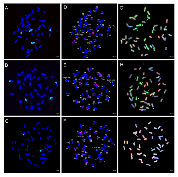由禾本科布氏白粉菌(Blumeria graminis f. sp. tritici)引起的小麦白粉病严重影响小麦的产量与品质。利用寄主抗性是控制该病害最有效的措施。相较于普通小麦的内源基因,源于近缘种属的抗病基因可以更好地抵御病原菌的变异。然而,外源抗病基因多以大片段染色体的形式整合到小麦基因组中,常伴有不利连锁累赘,是其在育种利用中的一大制约因素。因此,创制和利用抗白粉病且关键育种性状优良的外源种质资源,是遗传改良小麦抗性的重要策略。中国科学院遗传与发育生物学研究所农业资源研究中心安调过研究组利用八倍体小黑麦和普通小麦杂交,创制了两个成株期高抗白粉病的小麦-黑麦6R附加系YT4-1和6RL双端体附加系YT4-2,可应用于小麦白粉病抗性的遗传改良。