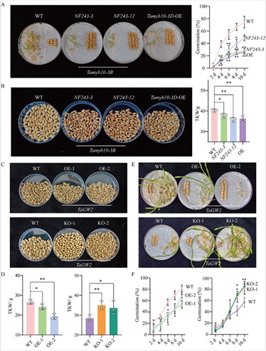 图1 Tamyb10和TaGW2基因均影响小麦的种子休眠性和种子大小