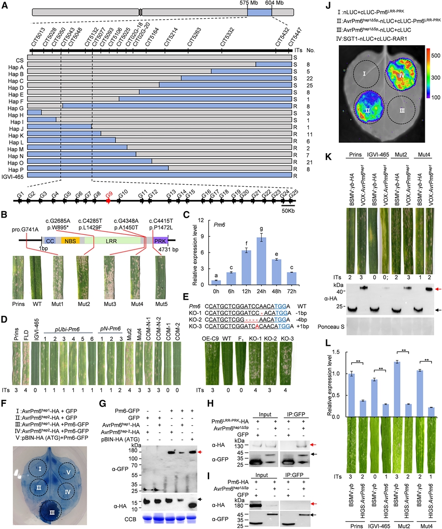 近日,遗传发育所贺飞团队与南京农业大学王秀娥团队合作,成功克隆了上述AvrPm位点中的重要基因-AvrPm6。研究人员通过高通量表型鉴定、全基因组关联分析及表达特征分析,锁定了AvrPm6的候选基因,并经分子实验证实,发现AvrPm6中单个氨基酸的改变即可影响其毒力功能,且AVRPM6能够直接与抗病蛋白PM6结合,从而激活Pm6介导的抗病反应。该结果增进了人们对R-Avr互作机制的理解,并为抗病育种提供了重要的靶标基因。