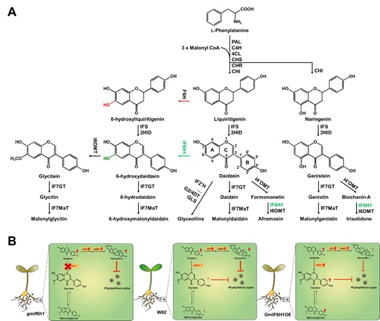 大豆异黄酮代谢途径新成员GmIF6H1调控抗疫霉病的机制解析