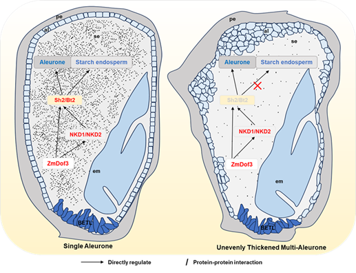 淀粉合成关键基因Sh2/Bt2调控玉米糊粉层发育的分子机制