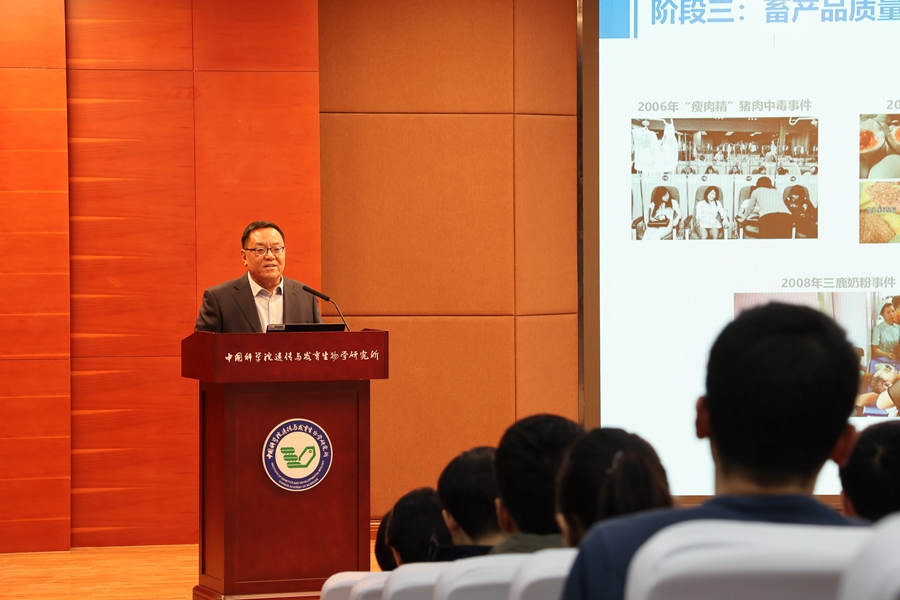 2025年11月21日,中国科学院遗传与发育生物学研究所举办遗传发育所精神大讲坛,中国饲料工业协会会长王宗礼研究员应邀作题为《我国畜牧产业发展的现状、前景及应对措施》的专题报告。研究所党委书记兼副所长邢雪荣、党群工作部部长王静等出席活动,科研人员及学生代表100余人参加。报告会由曹晓风院士主持。
