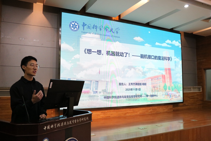 李川昀研究员带来了题为《生命的代码:什么使我们变得独一无二?》科普报告,通过简单易懂的语言向孩子们解析了人与人之间为什么会有差别,以及科学如何改造和重新编写生命。王秀杰研究组博士研究生杨阳则以《想一想,机器就动了!——脑机接口的魔法科学》为题,讲述了脑机接口技术的现状、原理和如何助力人类发展。小听众们积极参与互动,气氛活跃。
