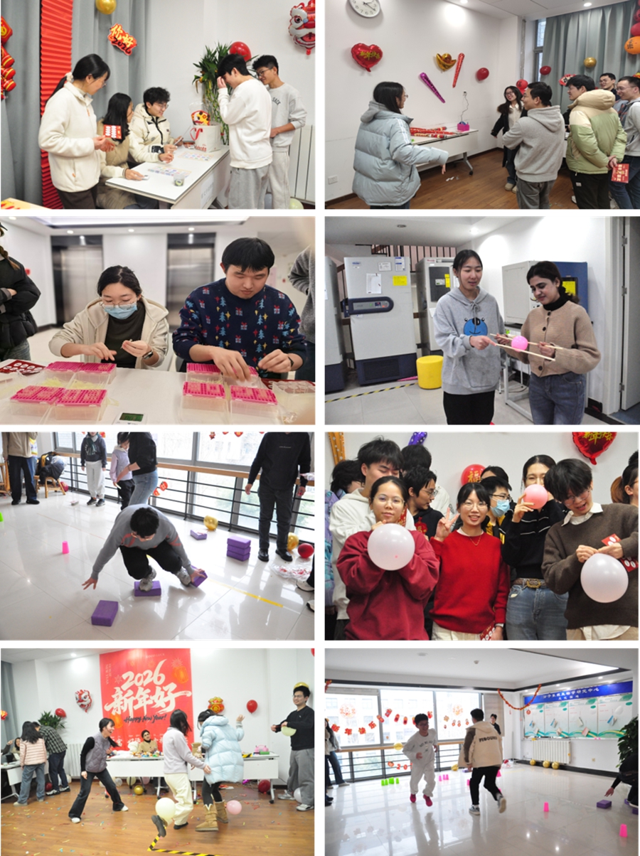 王秀杰为全体师生送上美好的新春祝福,她回顾了过去一年中心取得重要进展与成果,对全体师生的辛勤努力与突出贡献表示衷心感谢,并鼓励大家在新的一年里保持昂扬斗志,携手共创佳绩。党群工作部部长王静、各位研究员以及研究生部的老师们也纷纷向中心师生表达了亲切问候与新年祝愿,现场气氛温馨热烈。联欢会设置了丰富多彩的趣味活动,既有“拼豆插枪头”“看文字读颜色”等考验专注与敏捷的脑力项目,也有“欢乐踩气球”“竹竿运球”“时间策略折返跑”“摸石头过河”等体力与协作兼备的竞技游戏,更有“你来比划我来猜”“羽箭投掷+套圈联动游戏”等充满欢声笑语的互动活动。师生们踊跃参与、默契配合,现场气氛热烈、掌声笑声不断,生动展现了科研工作者朝气蓬勃、团结向上的精神风貌。