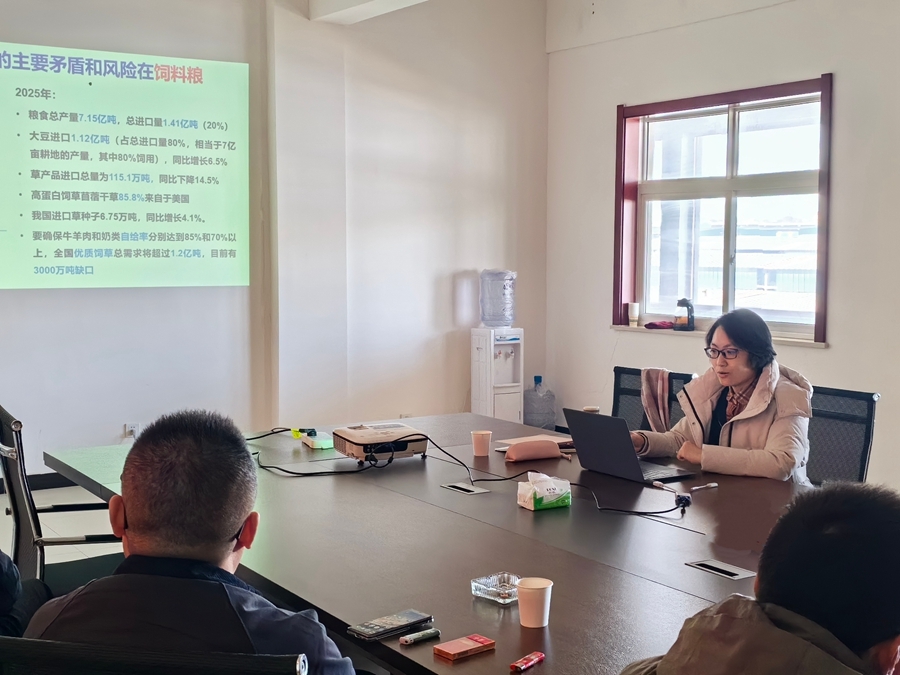 胡赞民介绍了遗传发育所的基本情况与研究方向;研究员邓娴、高级工程师陈宇红分别就新型耐盐碱饲草田菁及微生态制剂在畜牧业中的应用作专题报告,并与参会企业深入交流,明确后续工作方案。