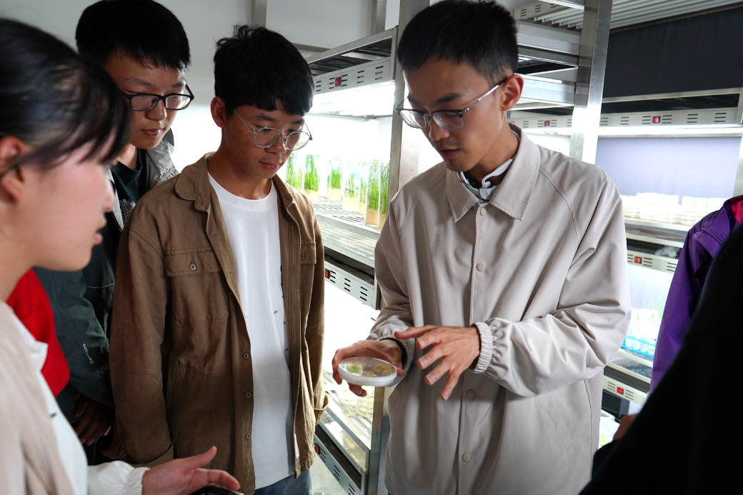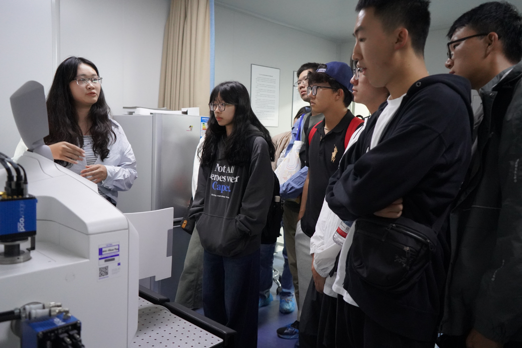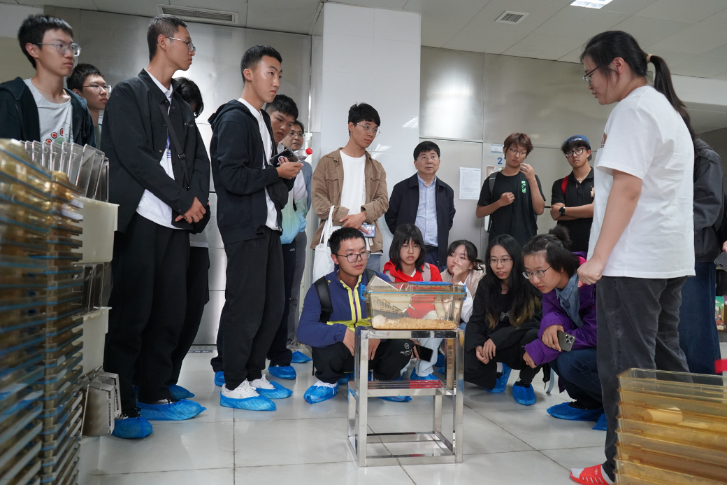 活动的另一重要环节是参观研究所的平台和实验室。在动物实验中心,同学们近距离观察实验小鼠,了解到其作为模式生物在生命科学研究中的重要应用。在生物影像技术平台,精密先进的超高分辨率显微镜展示了研究所的科研“硬实力”。工作人员特别寄语新一代学子,鼓励他们未来能在高尖端科学仪器的自主研发上为国家贡献力量。在基因编辑实验室,大家领略了基因组编辑技术的前沿魅力,重点了解了CRISPR技术如何打破传统育种界限、创制新种质资源,感受到了中国科学家在该领域自主创新的决心与实力。参观过程中,工作人员都进行了细致且生动的讲解,并与同学们进行了互动交流。