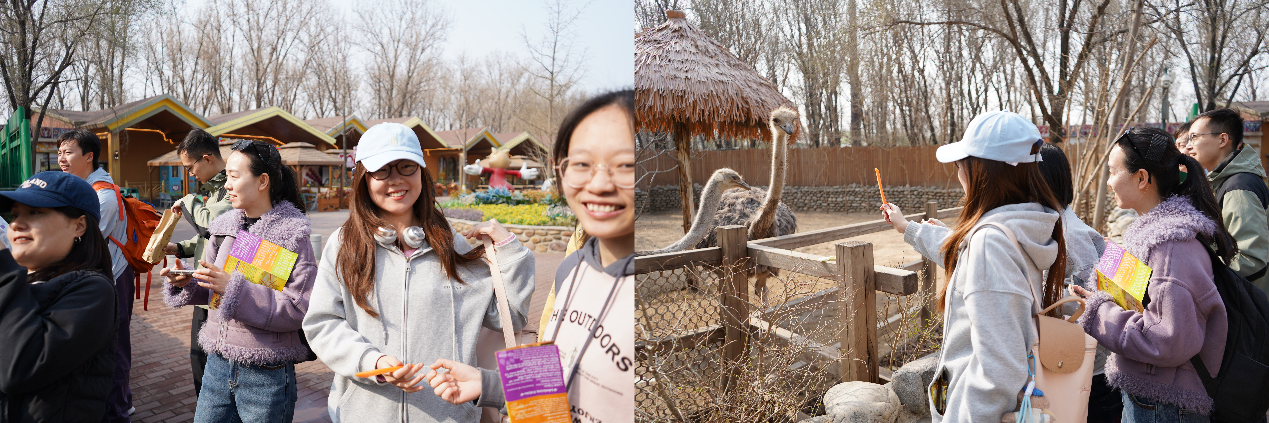 本次活动地点北京野生动物园占地 3600 余亩,园内栖息着 200 余种、5000 余只各类野生动物。在自由活动环节,同学们以小组为单位游园参观,与动物近距离互动,漫步园区、沐浴春光,在自然环境中舒缓科研压力、释放青春活力,充分感受春日户外乐趣。