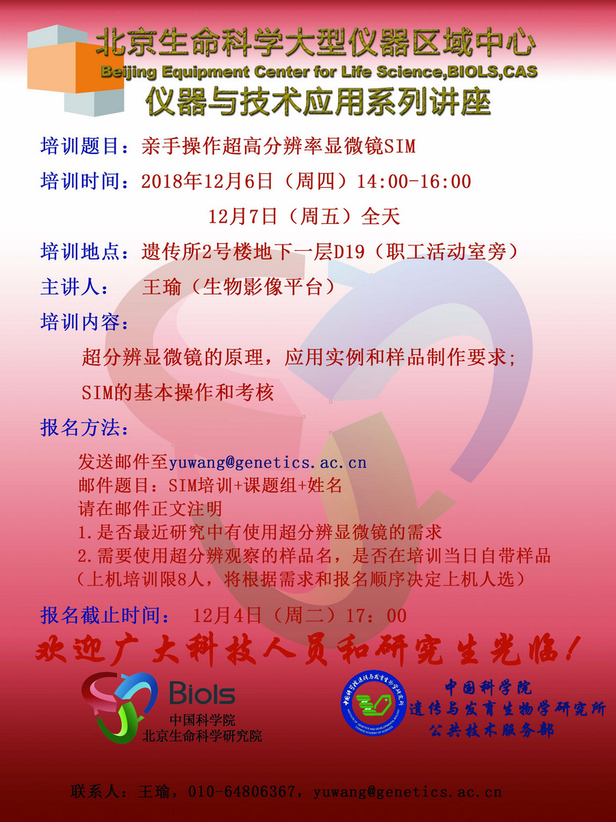 仪器与技术应用系列讲座(培训时间:2018年12月6日-7日)