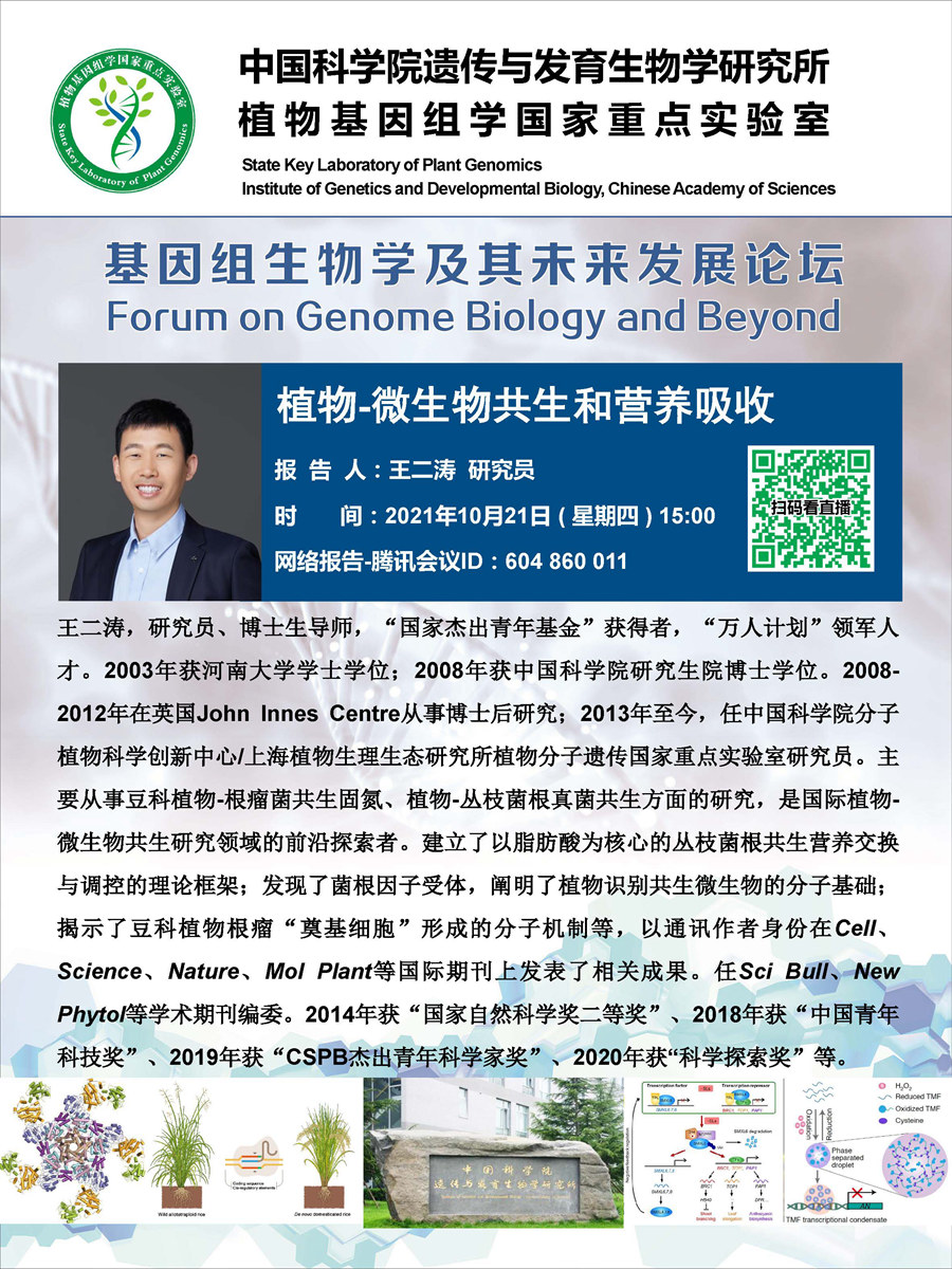 基因组生物学及其未来发展论坛(网络报告):植物-微生物共生和营养吸收(时间:2021年10月21日15:00)