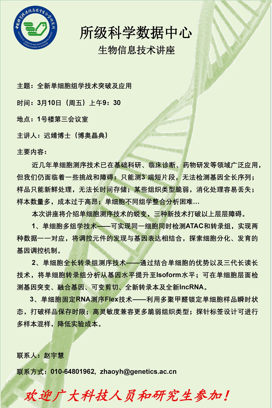 全新单细胞组学技术突破及应用讲座(时间:2023年3月10日9:30)