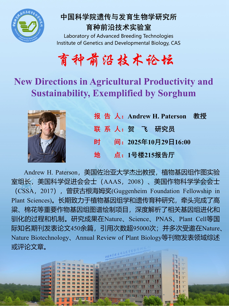 育种前沿技术论坛:New Directions in Agricultural Productivity and Sustainability, Exemplified by Sorghum(时间:10月29日16:00)