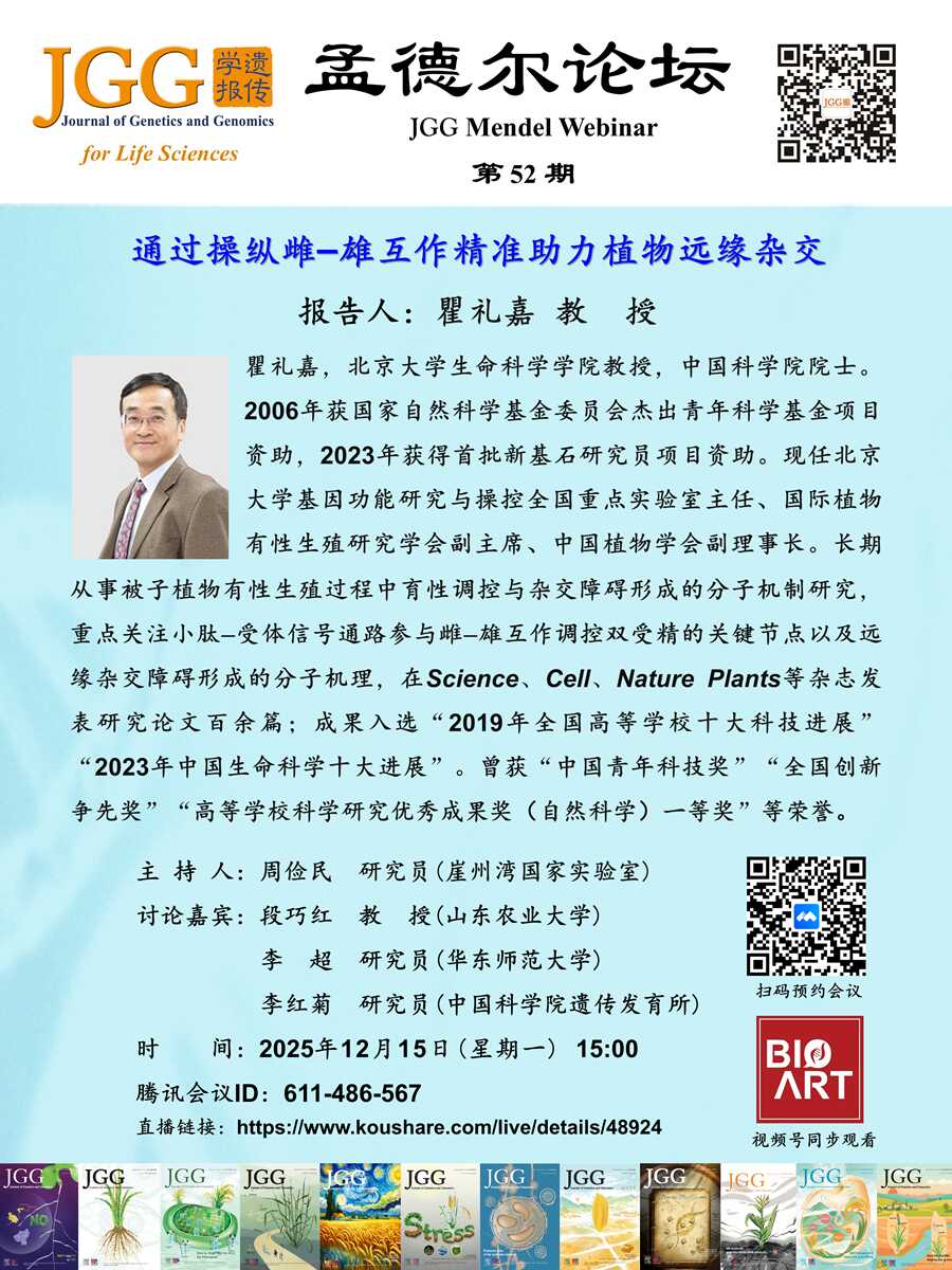 JGG孟德尔论坛|瞿礼嘉教授:通过操纵雌–雄互作精准助力植物远缘杂交
