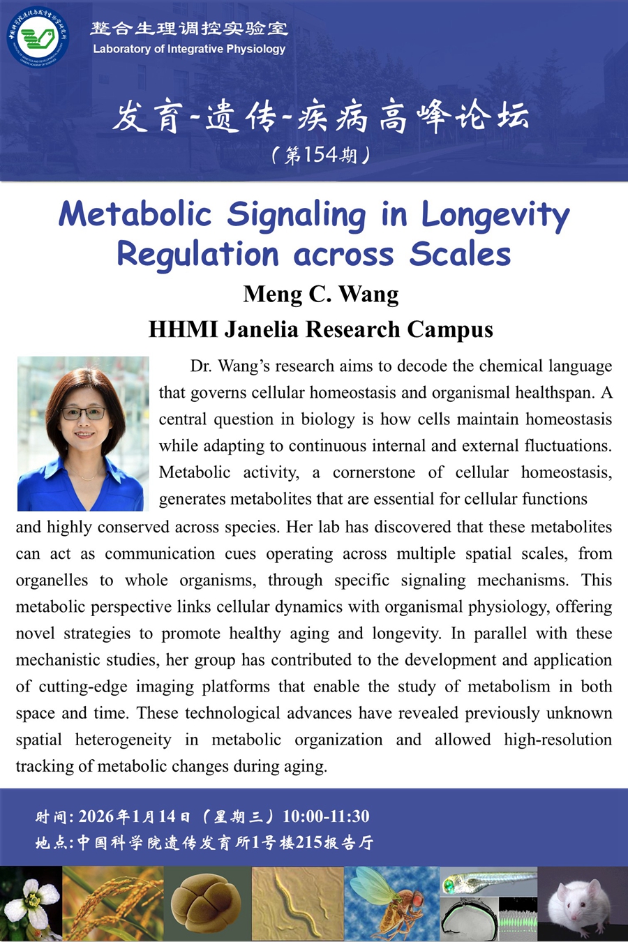 发育-遗传-疾病·高峰论坛:Metabolic Signaling in Longevity Regulation across Scales(1月14日10:00)