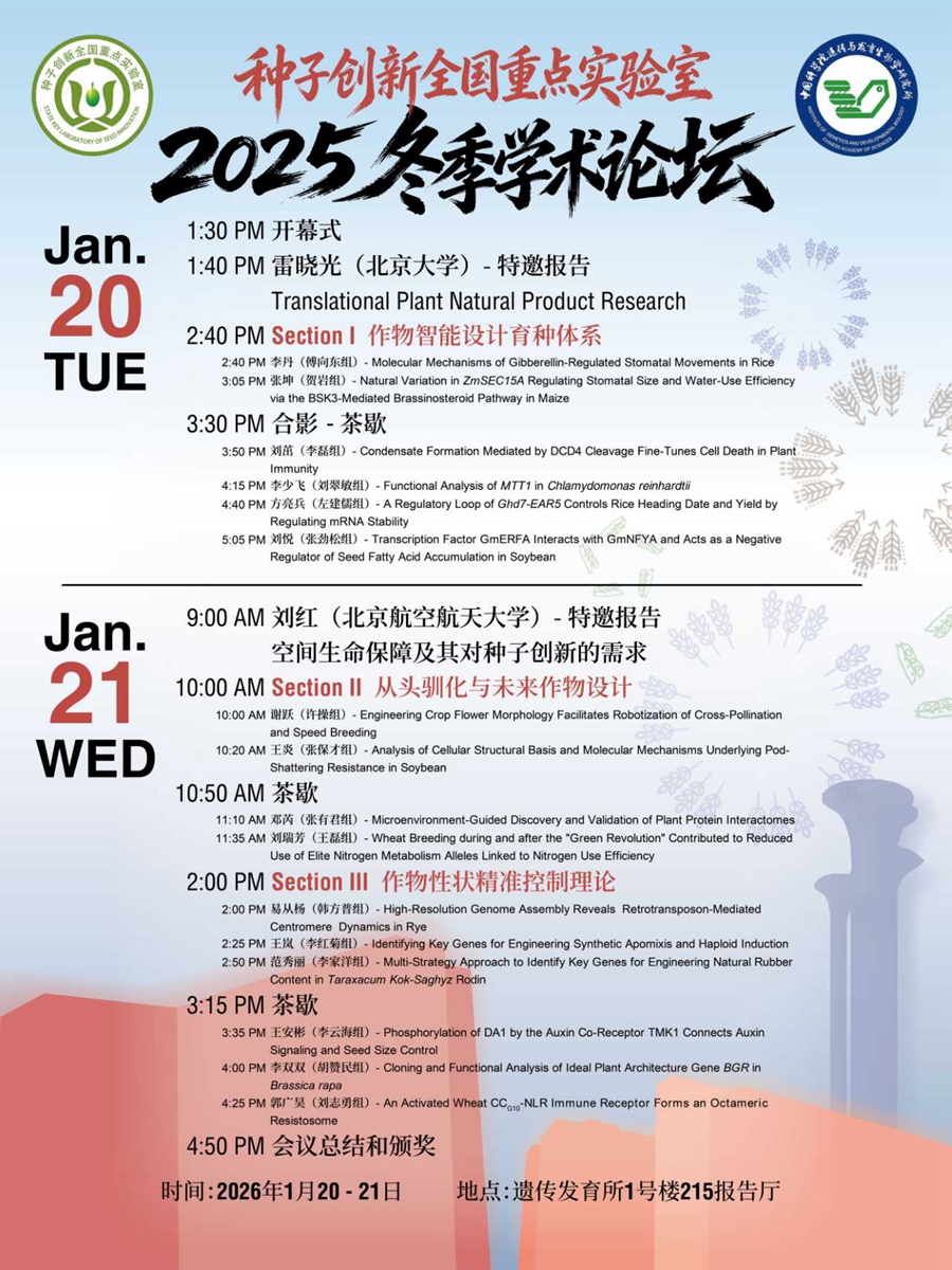 种子创新全国重点实验室2025年冬季青年学术论坛(时间:2026年1月20-21日)