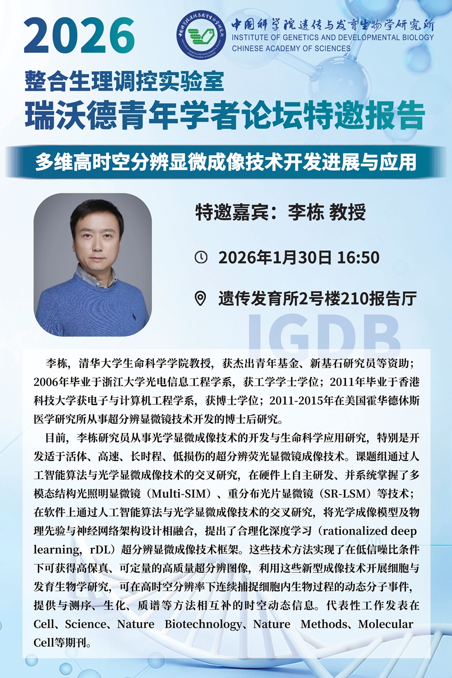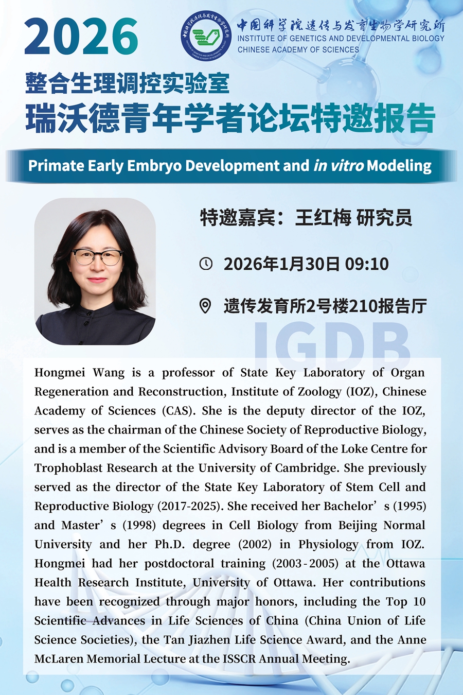 整合生理调控实验室2026年度青年学者论坛特邀报告(1月30日上午9:10;下午16:50)