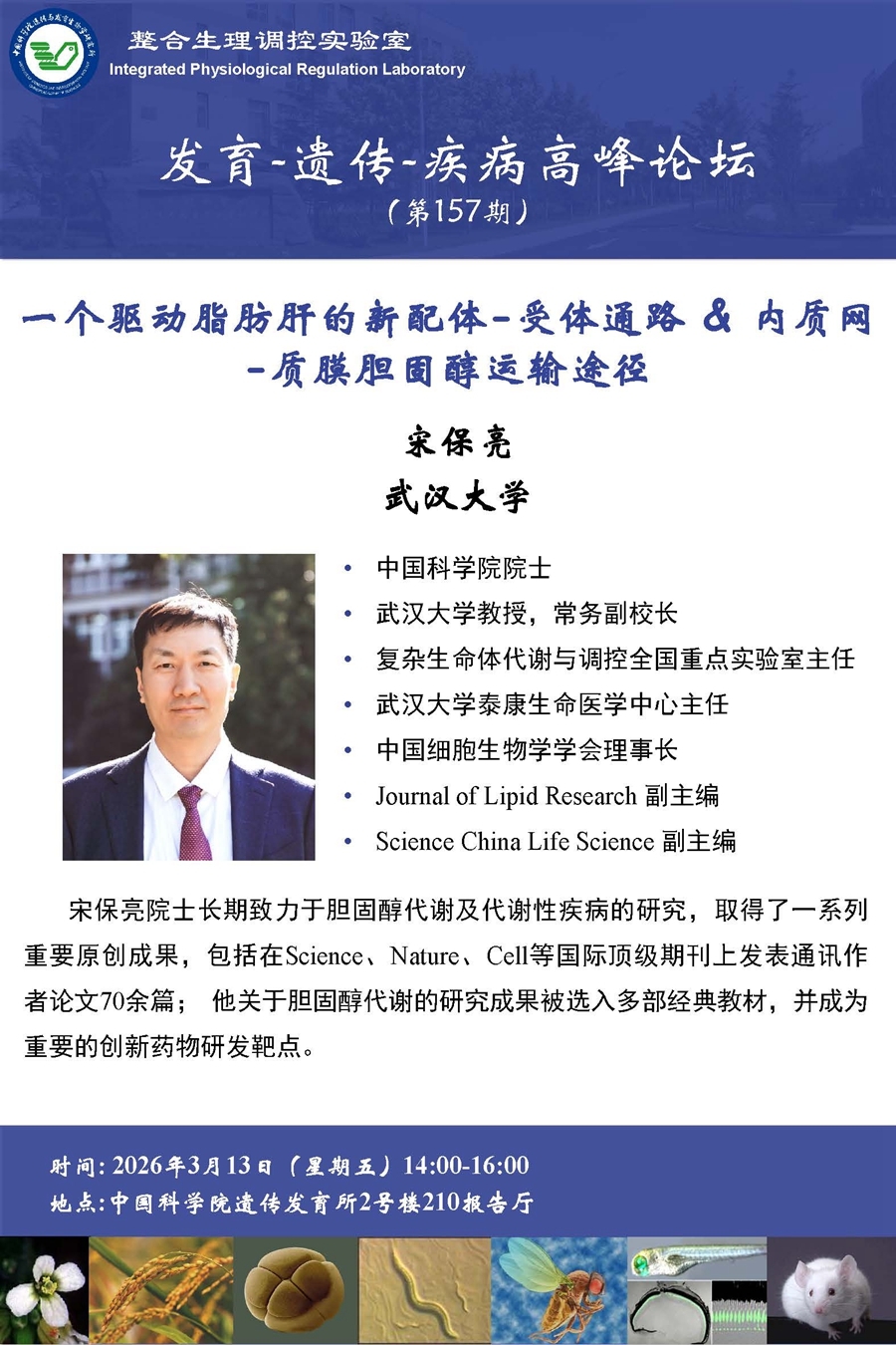 发育-遗传-疾病·高峰论坛:一个驱动脂肪肝的新配体-受体通路 & 内质网-质膜胆固醇运输途径(3月13日14:00)